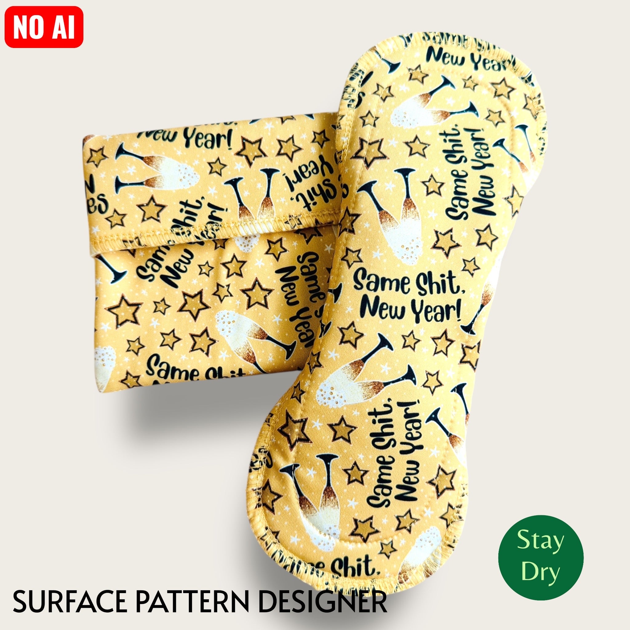 A little sarcastic sparkle for your cycle. Same Shit, New Year is the perfect mix of humor and celebration — champagne glasses, stars, and a sassy reminder that sometimes… nothing really changes except the date.