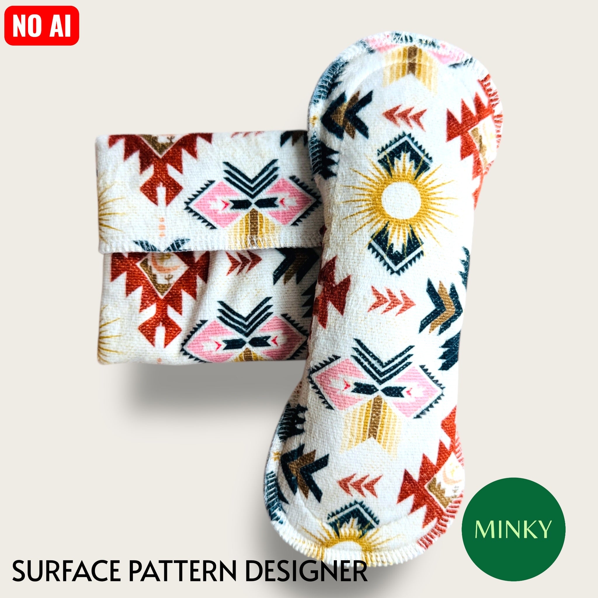 • Cream base with rich Western accents — clay red, gold, navy, and blush