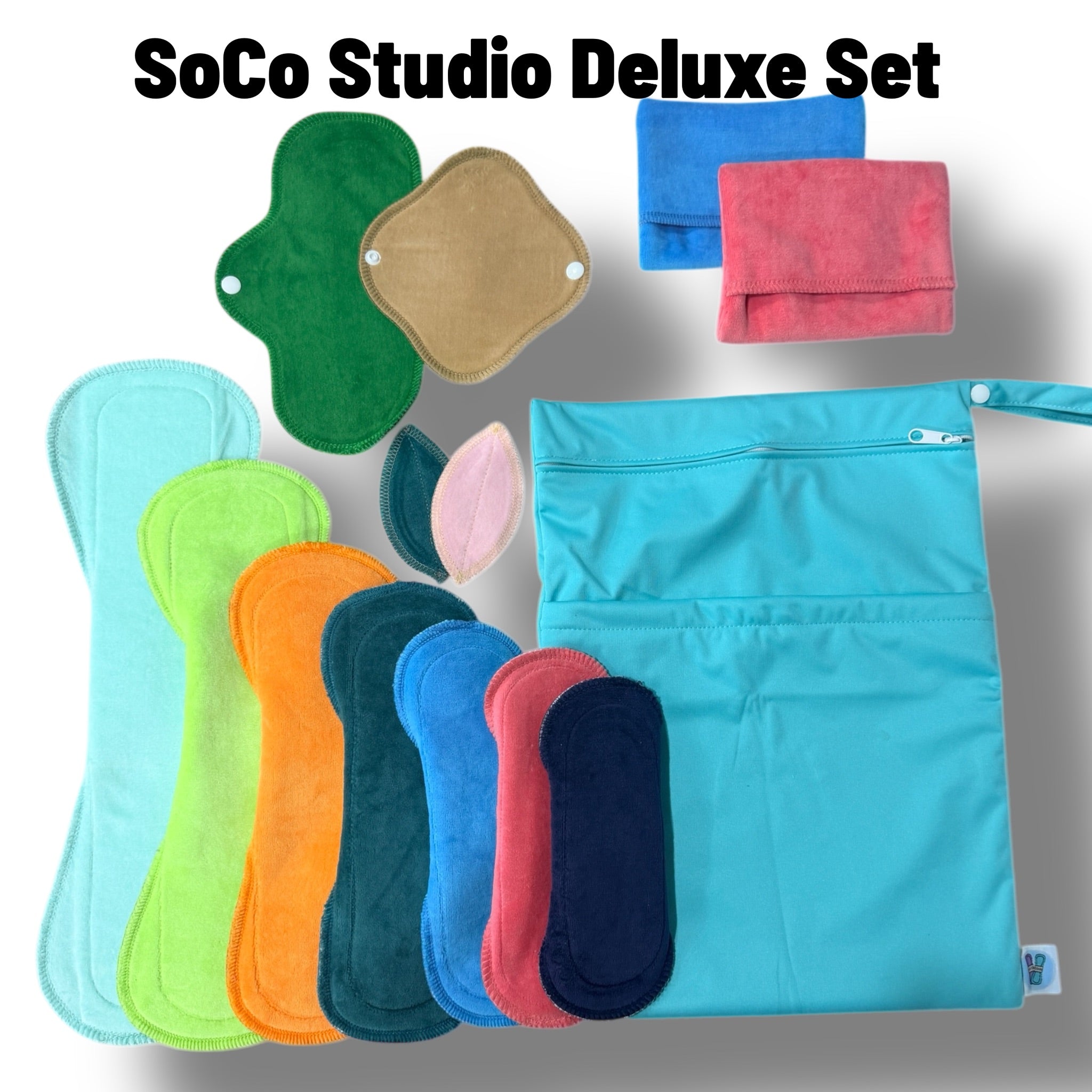 The SoCo Deluxe Bundle is your all-in-one, premium starter set designed for maximum comfort, convenience, and confidence throughout your cycle. Whether you’re switching to reusables for the first time or upgrading your stash, this bundle provides every essential you need — in our softest, highest-quality materials.