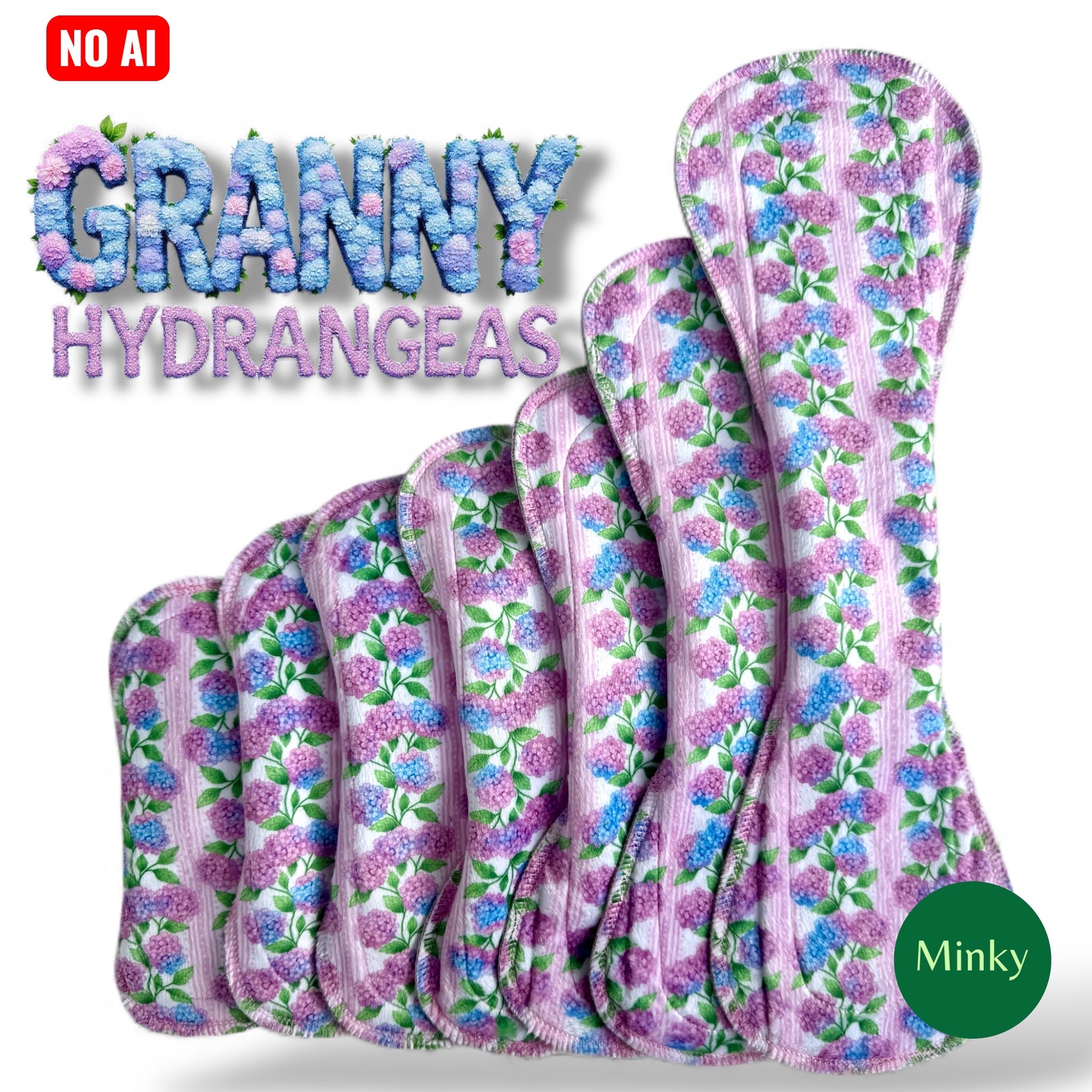 Cheerful, nostalgic, and full of charm — Granny Hydrangeas brings together soft stripes and blooming hydrangeas in dreamy shades of lavender, blue, and pink. This print feels like a sunny garden visit and a cozy heirloom all at once.
