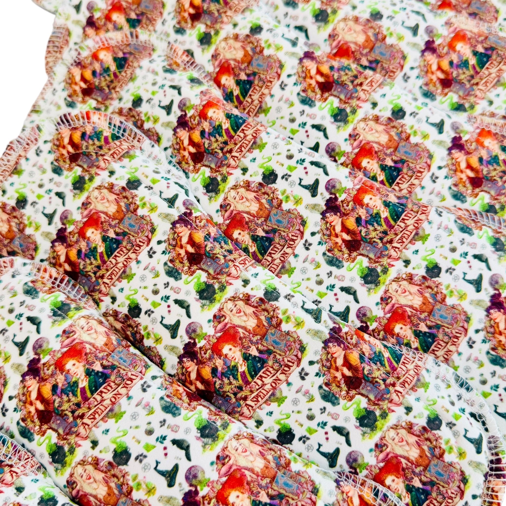 Whimsical spellbooks, potions, broomsticks, black cats, and swirling autumn magic make this print a total favorite for cozy-witch season… or honestly year-round for our magical babes.